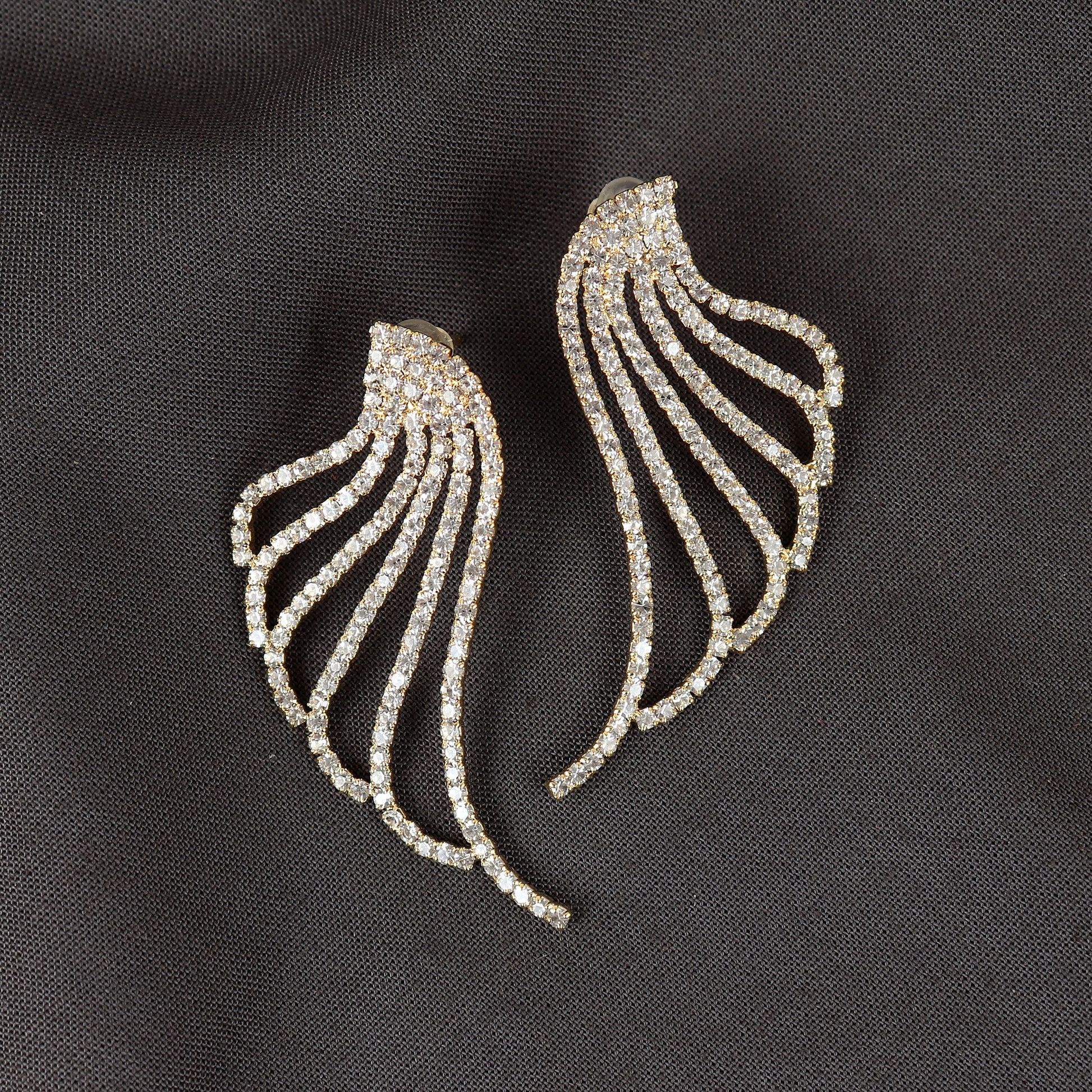 Unleash your inner goddess with these mesmerizing Angel Wings Earrings. Designed to captivate, these dazzling wing-shaped earrings are encrusted with shimmering crystals, giving you an ethereal and glamorous look. Perfect for special occasions or adding a touch of luxury to your everyday style.